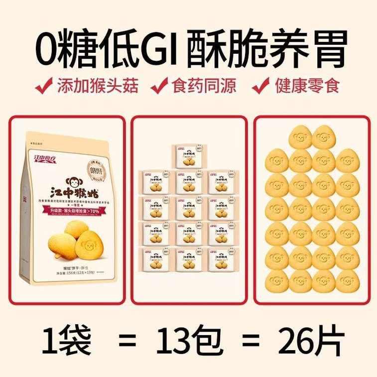 【Hericium erinaceus increased by 70% Yam Calcium Carbonate】Jiangzhong Hericium Biscuits 156g crispy zero sugar stomac
