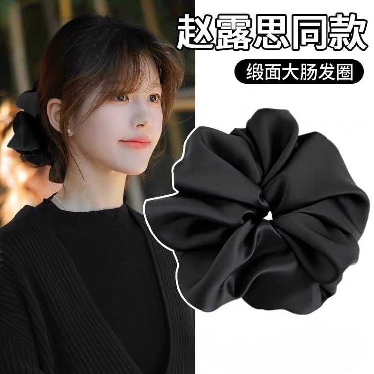 High Quality Vintage Extra Large 18cm Diameter Satin Hair Tie #Black