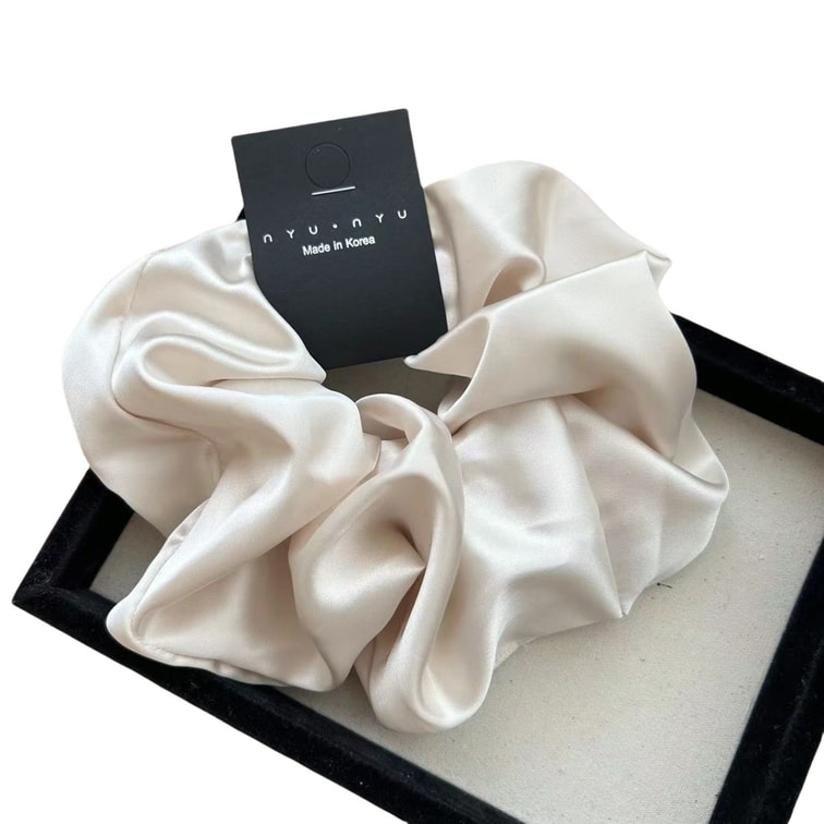 12월 추천 상품: 한국 스타일 오버사이즈 새틴 헤어 타이 - 스타일리시한 룩 연출과 얼굴 축소 효과에 필수 아이템; 프랑스 레트로 스타일 지름 18cm 스크런치; 탄력성 뛰어난 헤어 타이 #펄 화이트