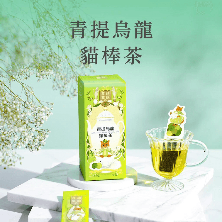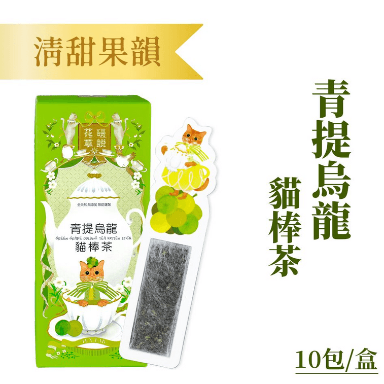 [홍콩 직배송] 플라워 앤 허브 캣 스틱 티 시리즈 그린 그레이프 우롱 10개입