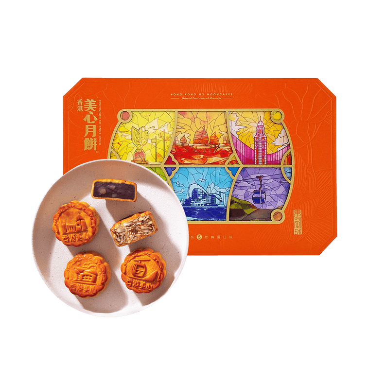 홍콩 동방명주 월병 선물 상자 - 다양한 맛, 6개입, 23.2oz