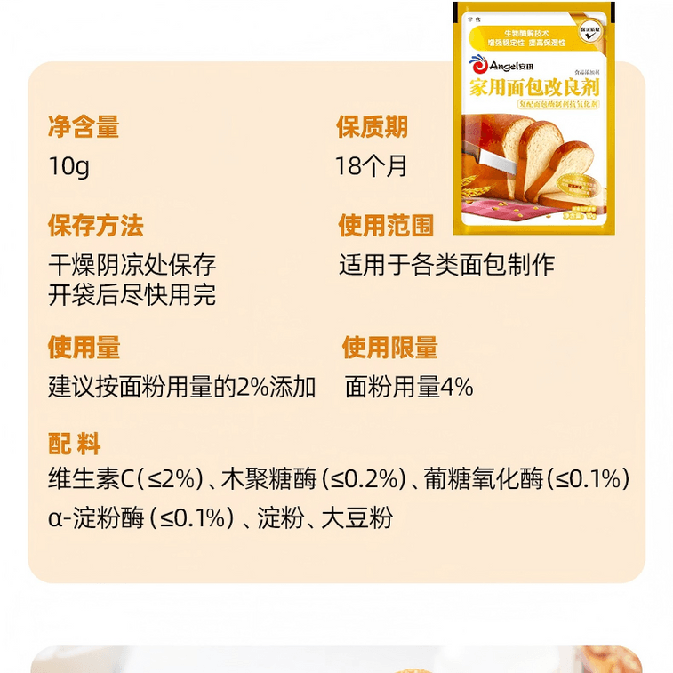 엔젤 빵 개선제, 팽창제, 8팩 효모(10g)