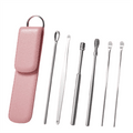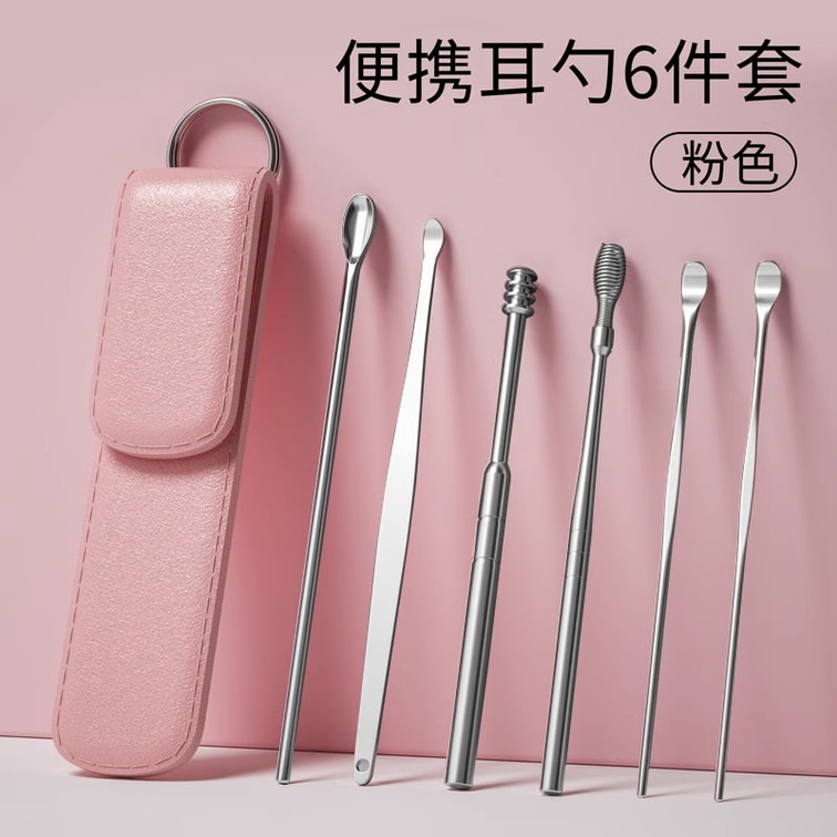 Household Ear Pick Six-Piece Set Coil Spring Ear Picking Tool Set Pink