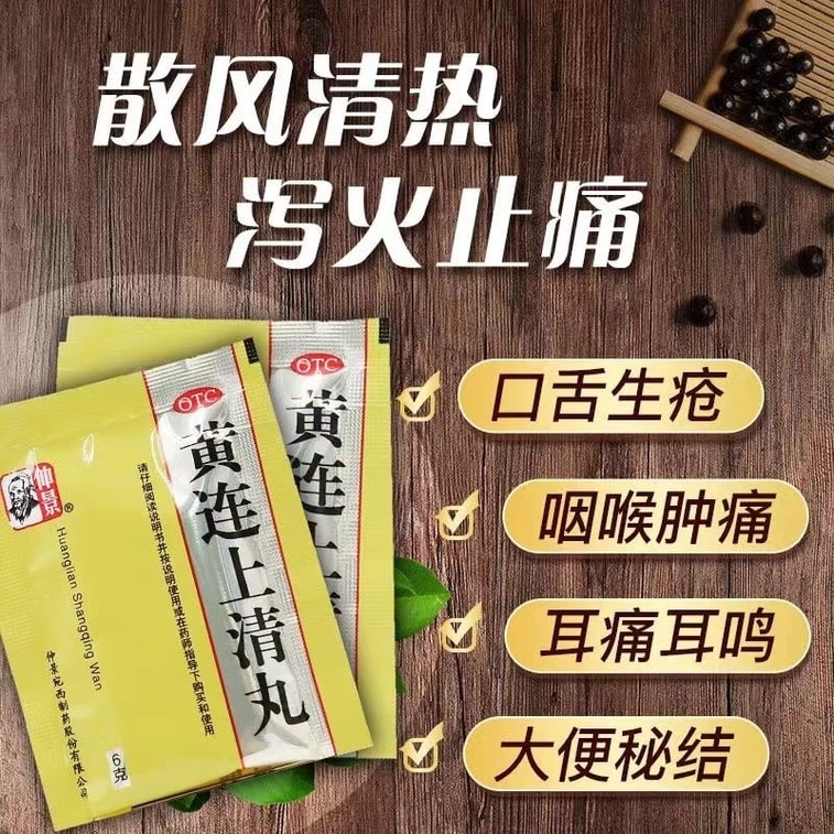 [중국 직배송] 중경황련상청환: 풍사를 제거하고 열을 내리며, 화기를 없애고 통증을 완화하며, 이명, 변비, 어지럼증, 치통을 치료합니다. 10포/상자 [집에서 체내 열을 내리는 데 꼭 필요한 약] | Yami