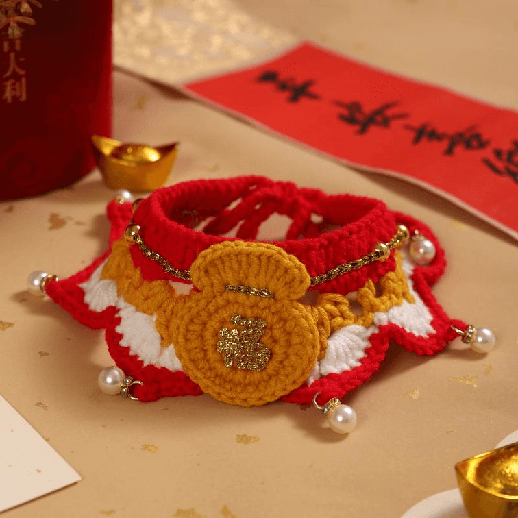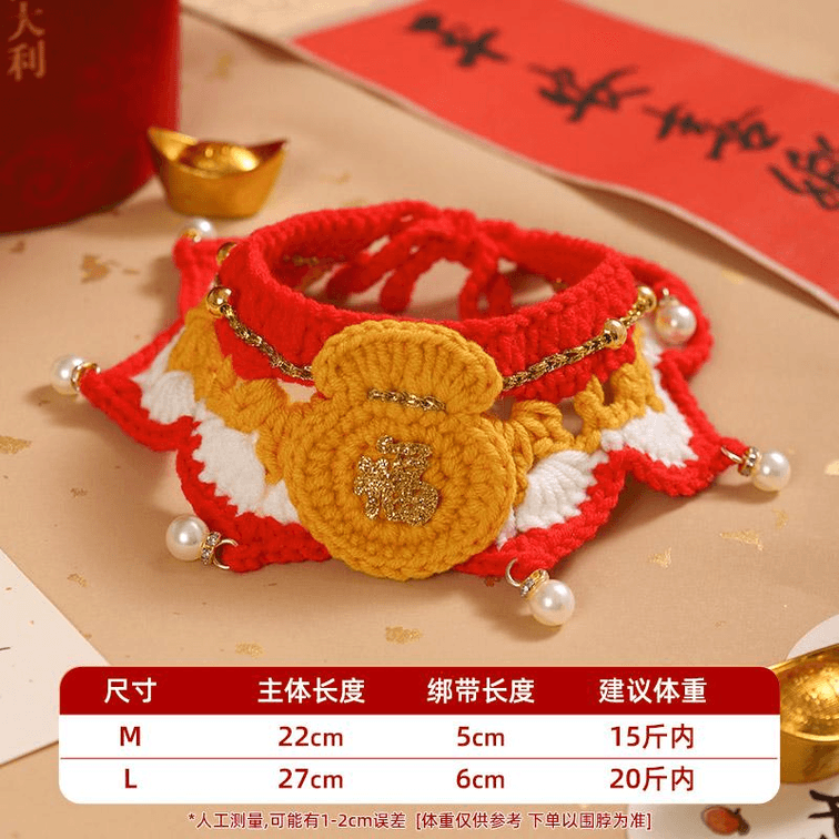 [중국 직배송] 화위안 애완용품, 화위안 새해 스카프, 사이즈 L (20파운드 미만), 27*6cm*1개