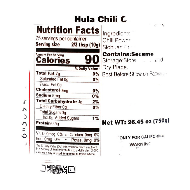 훌라 칠리 오일, 26.45온스 【면, 차가운 혼합 야채용】