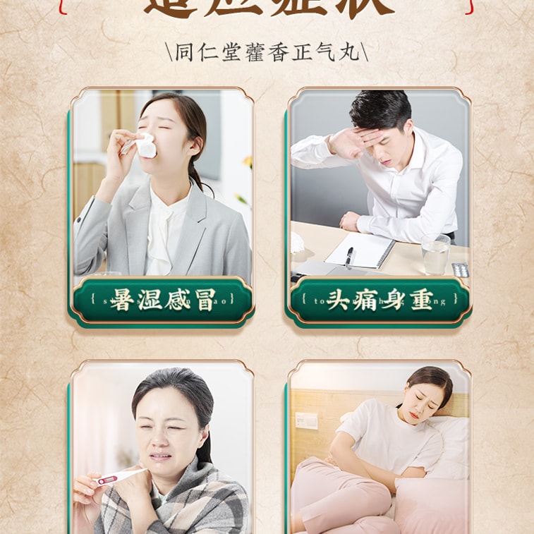[중국 직통] 북경통인당화상정기약 열사병 증상을 완화하고, 표면을 완화하고 습을 해소하며, 기(氣)를 조절하고 몸을 조화롭게 하며, 감기, 두통, 현기증, 8알*6봉/박스