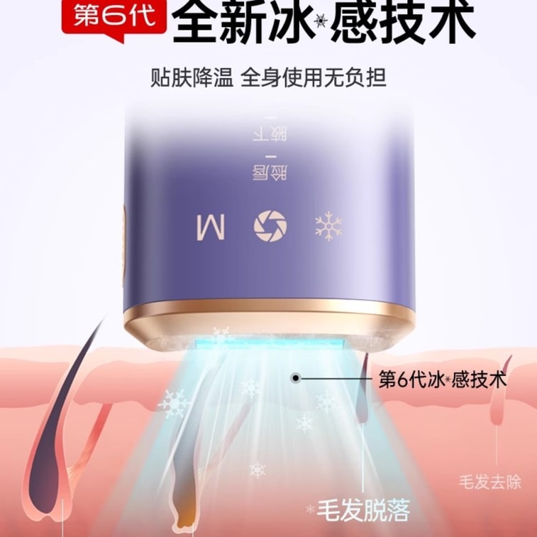 [중국에서 직접 우편 발송] 콘카 동결점 제모기, 가정용 무통 전신 겨드랑이 개인 부위 제모, 학생 전용 제모, 화려한 보라색, 7가지 모드 + 전신 제모, 1개