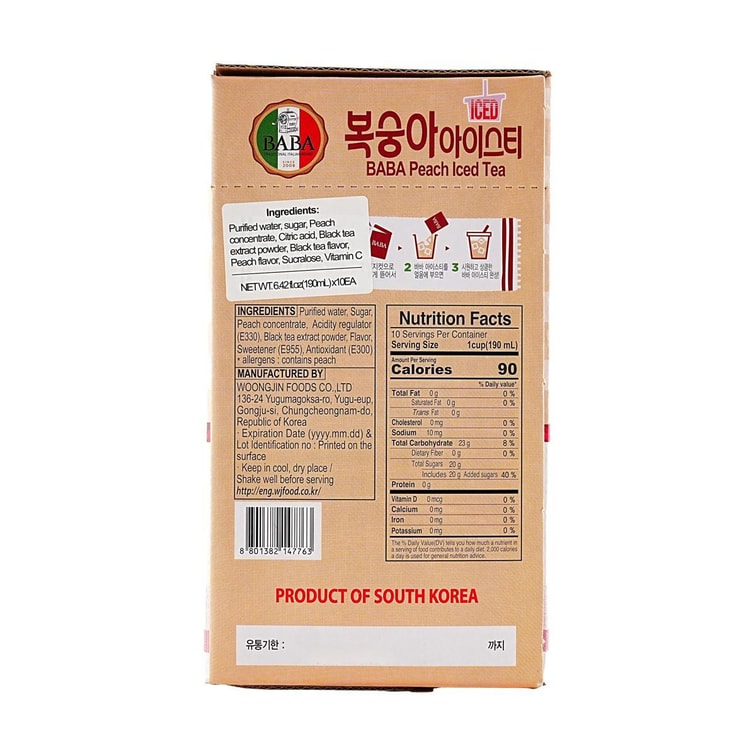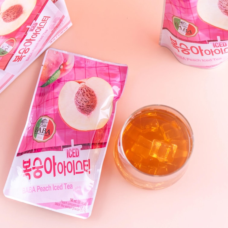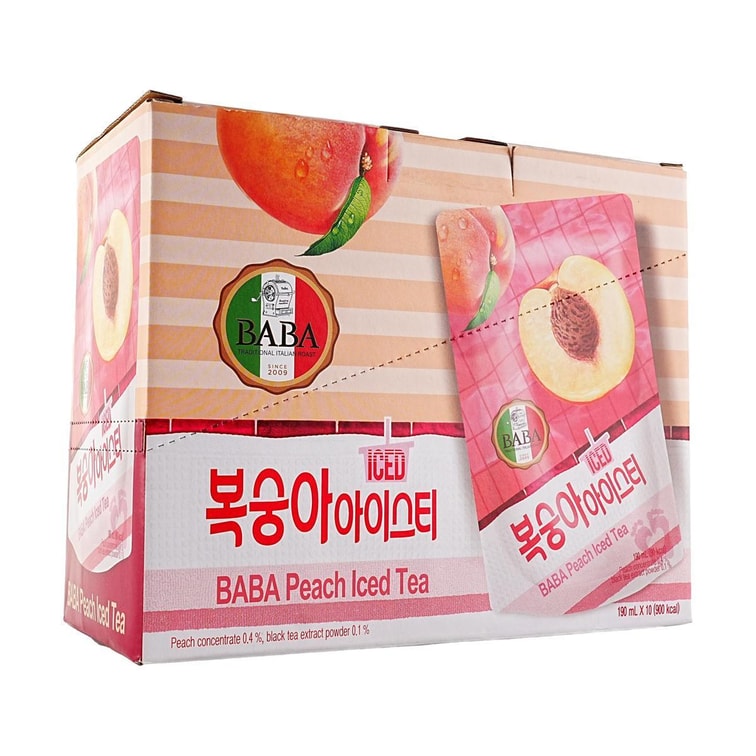 BABA 복숭아 아이스티 에이드 주스, 6.42 fl oz*10팩【0 지방 저칼로리】