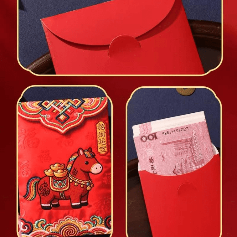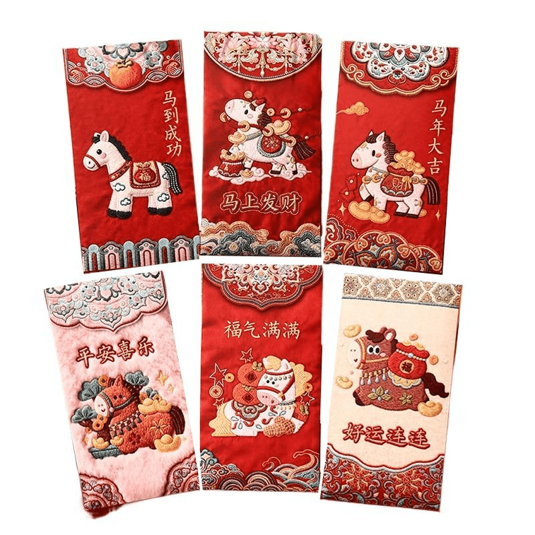 [중국 직배송] 리우핀탕 모조 자수 스타일 입체 세공 새해 세뱃돈 봉투, 중국식, 행운을 가져다주는 돈 봉투, 16.6*8.7cm*6개입