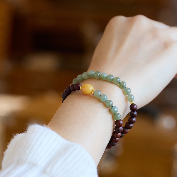 Imperial Harmony Stacking Bracelet 6mm Sandalwood • 6mm Hetian Jade • Baltic Amber (1 Strand) 1 Strand/15g