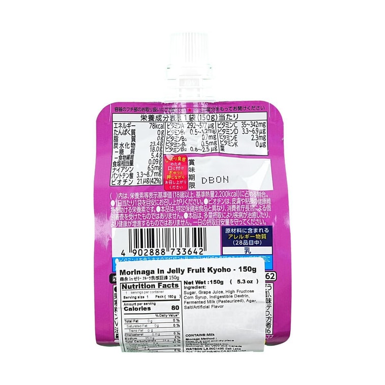쇼쿠칸 과일 주스 젤리 포도맛, 5.29온스【0지방 0칼로리】【12가지 비타민 풍부】