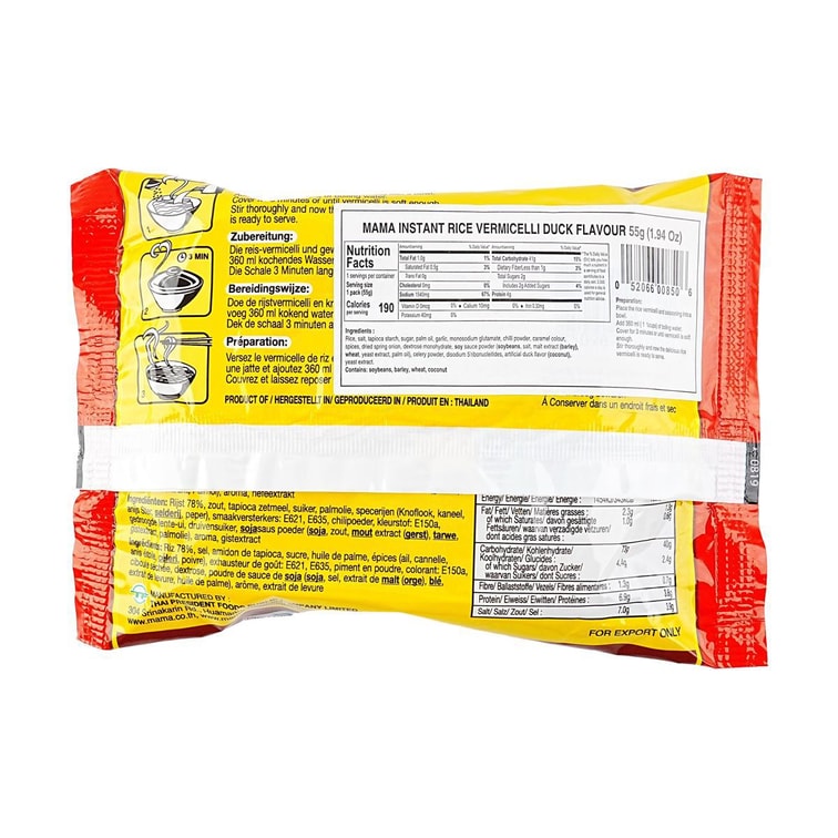 MAMA 인스턴트 라이스 버미첼리 오리맛 1.94온스 *4개【4팩】