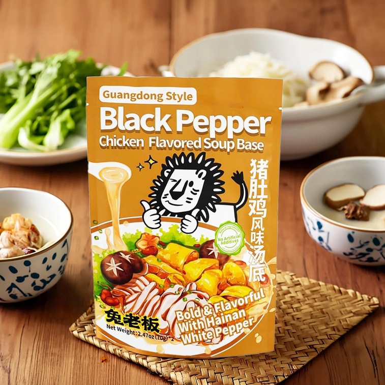 광동식 검은 후추 닭고기 맛 수프 베이스, 2.47온스*2 【핫팟, 라면, 쌀국수용】