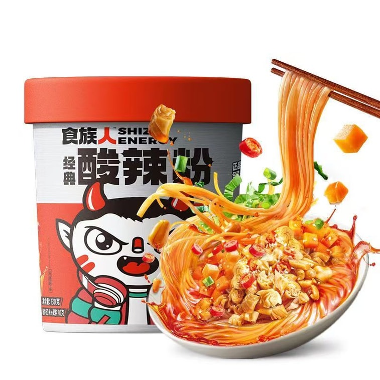 SHIZUREN 시즈렌 [매콤새콤] 뜨겁고 새콤한 쌀국수, 조리 필요 없음, 충칭 스타일, 즉석식품, 정통의 맛, 간편하고 빠르게 즐길 수 있어 기숙사 야식으로 제격, [신형 및 구형 포장 중 랜덤 발송] 130g*1통 | Yami
