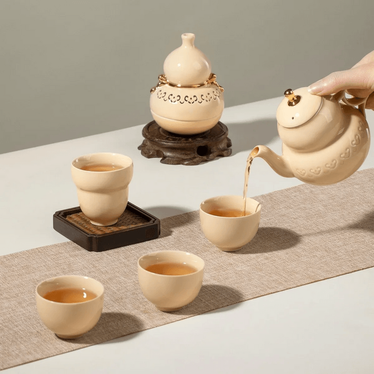 행운을 가져다주는 표주박 찻잔 세트 (찻주전자 1개, 마스터컵 1개, 컵 3개, 향로 1개)