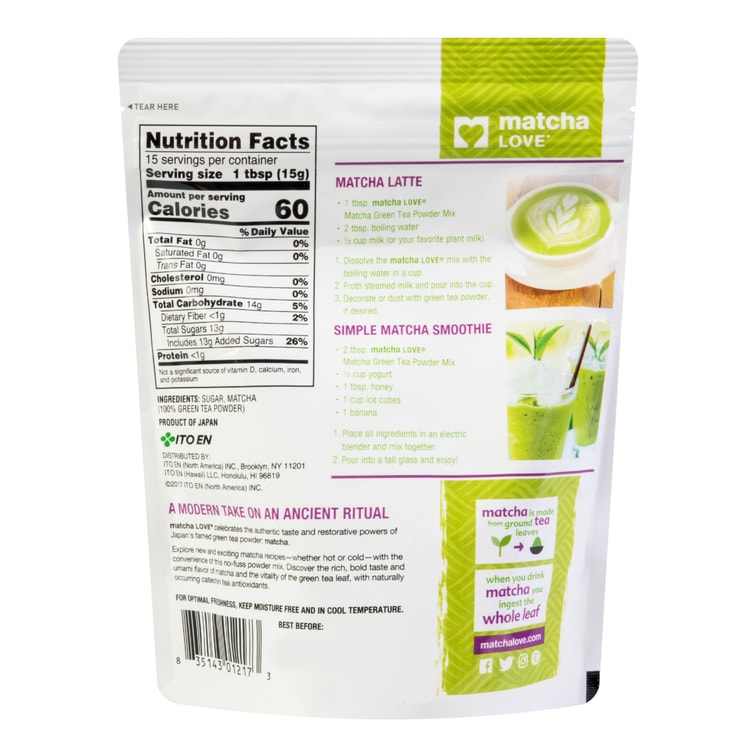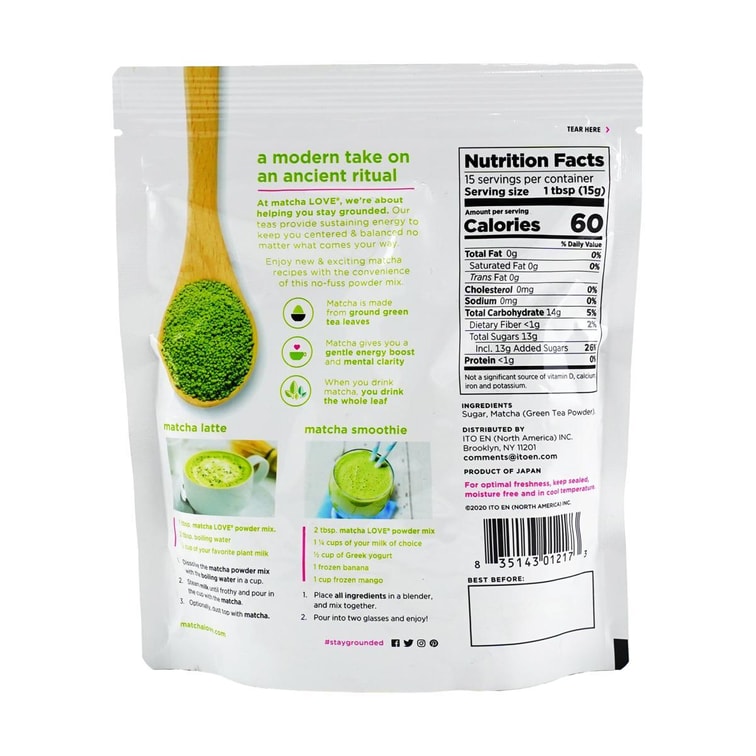 Are you a green tea lover? If that is the case, ITO EN MATCHA LOVE Sweetened Matcha Green Tea Powder Mix will be your ultimate go-to. Made with high-quality, natural green tea, making sure you won’t forget the taste after your first try! Sealed in a resealable bag, it will always be fresh!