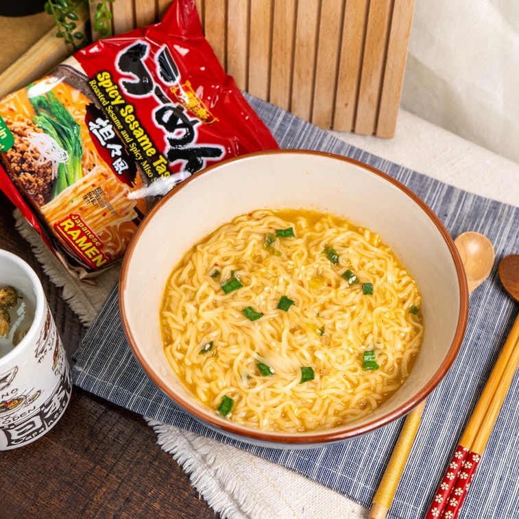 HIKARI 멘라쿠 일본 라면 - 즉석면, 매콤한 참깨맛 - 구운 참깨와 매콤한 된장국, 5개입, 510g | Yami