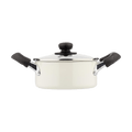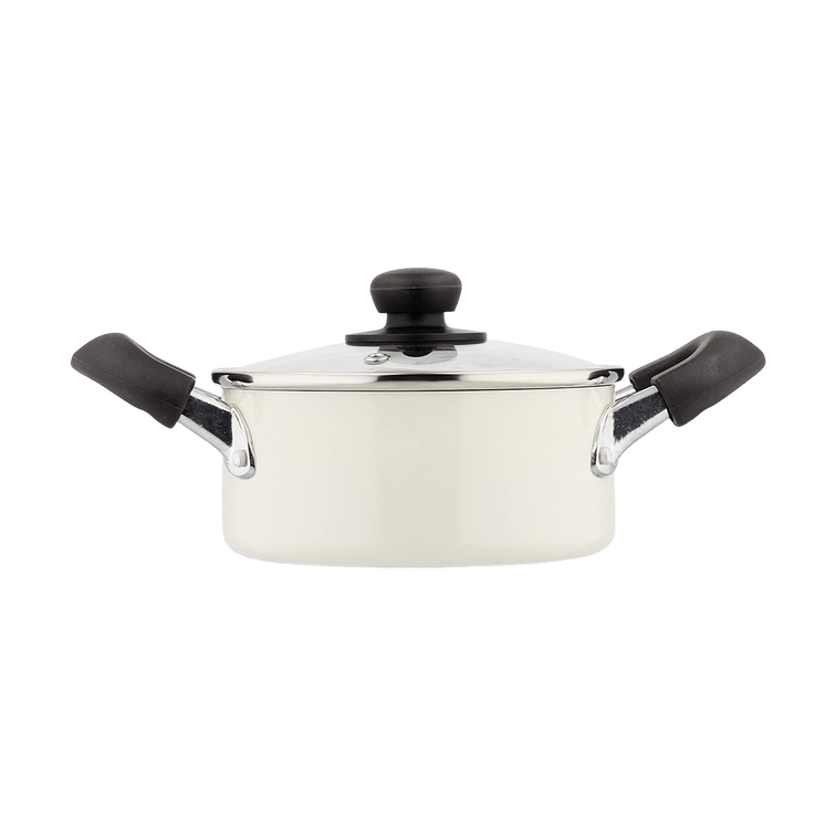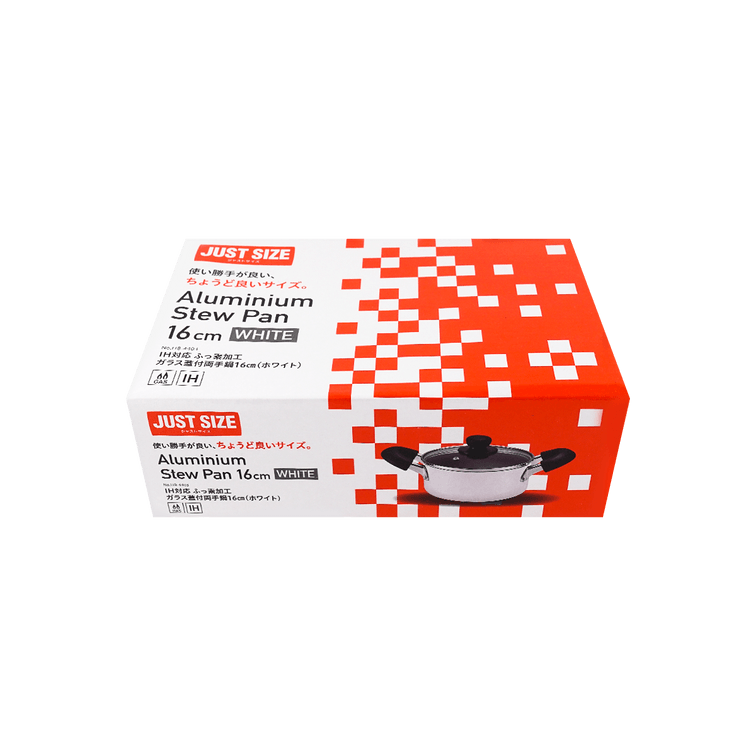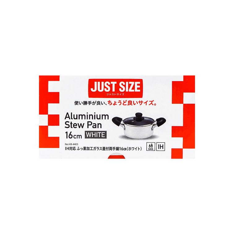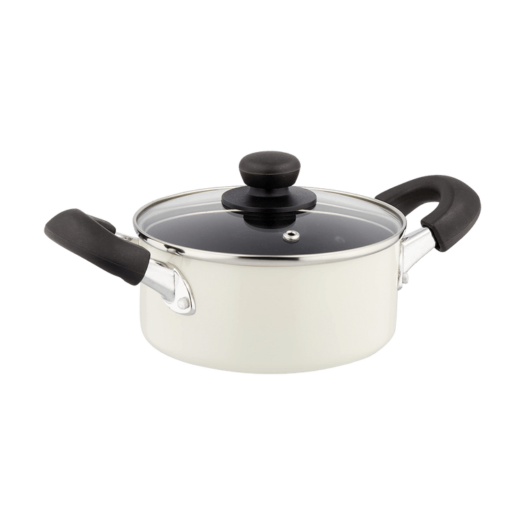 일본 금속 주방 조리용 붙지 않는 IH 냄비 손잡이 2개 유리 커버 포함, 16cm, 흰색