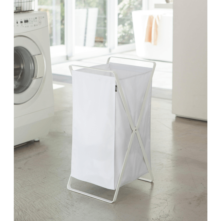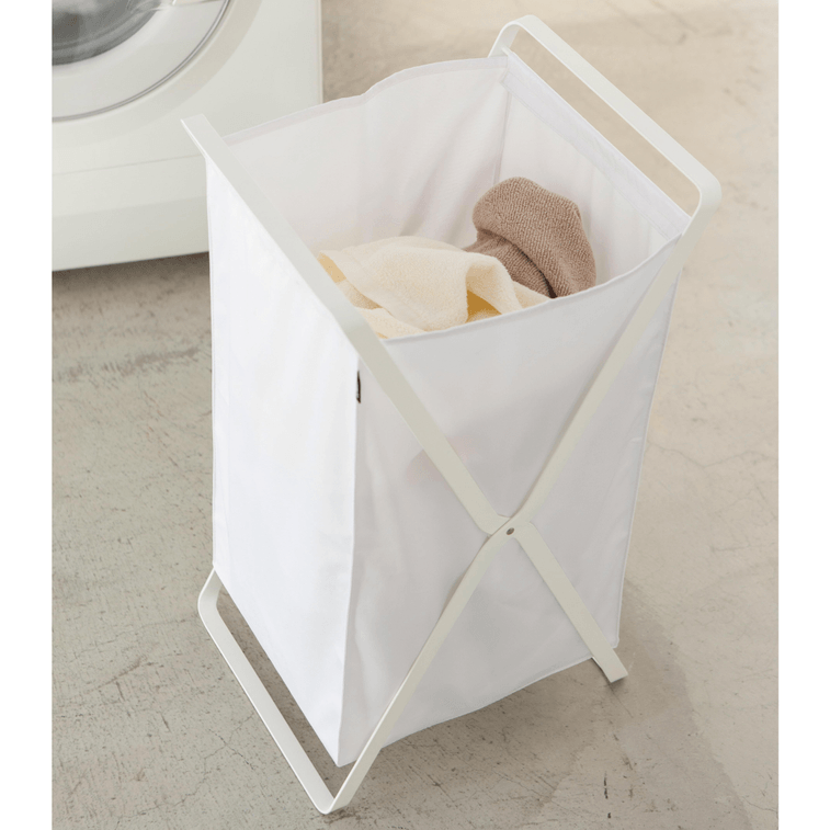 야마자키 홈 세탁 바구니 (높이 25cm) - 스테인리스 스틸 화이트 (1개)