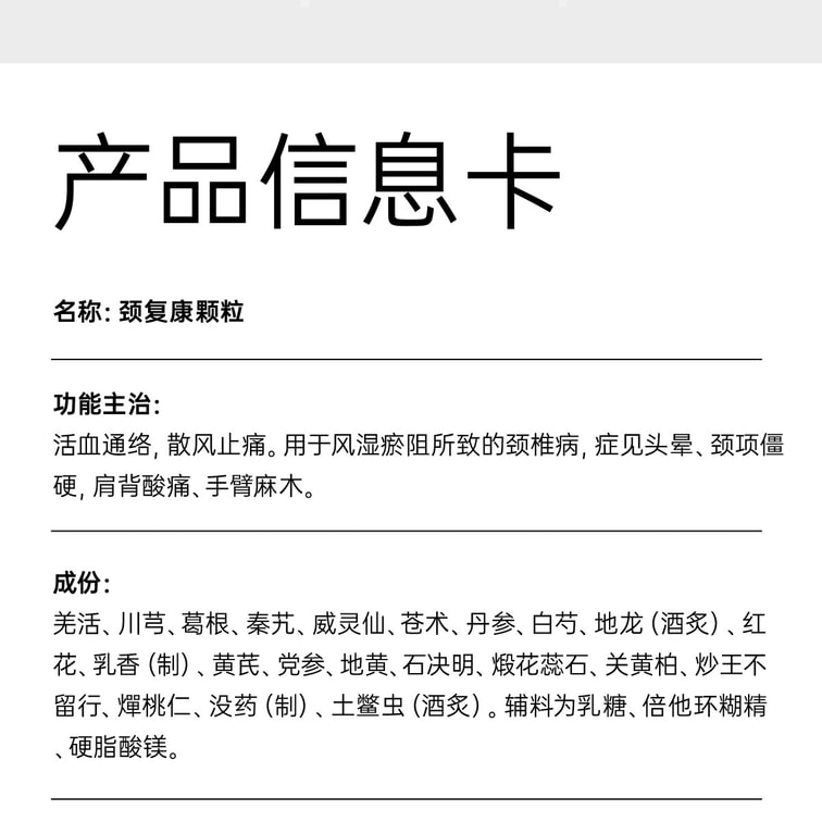 중국 Jingfukang Jingfukang 과립 경추 Huoxue Tongluo 통증 완화 현기증 어깨 통증 팔 마비 40g