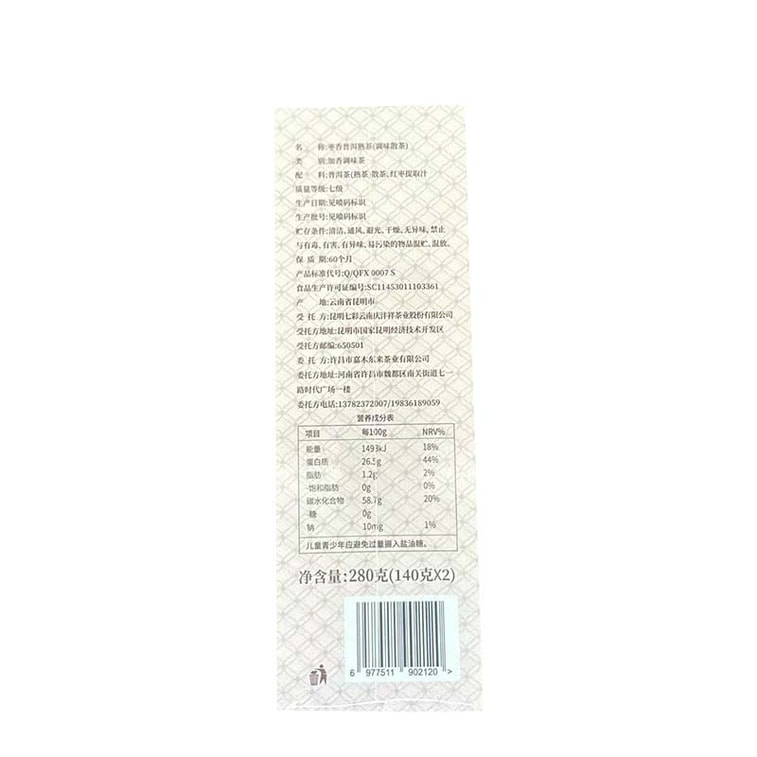 Jujube-scented Pu'er Tea Warm and Sweet Rich and Mellow 280g (140g * 2)