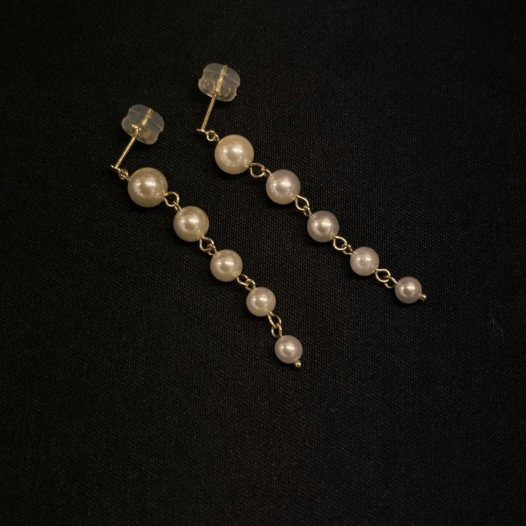 - 제품 특징: 1. 3mm에서 5mm 크기의 진주로 구성되어 따뜻하고 둥글며 윤기 있는 색조를 자랑합니다. 2. 크고 작은 진주의 자연스러운 배열은 진주의 그라데이션을 더욱 돋보이게 하여 가볍고 역동적인 시각적 경험을 선사합니다. 3. 약 42mm의 드롭 길이는 움직임에 따라 흔들리며 얼굴의 밝고 우아한 분위기를 더합니다. 4. K18YG 골드의 조합은 부드럽고 알레르기 유발 성분이 없는 느낌을 주며, 견고한 내구성은 고급스러운 느낌을 더합니다. 5. 일상복, 출퇴근, 공식 모임, 연회 또는 선물용으로 적합합니다.
