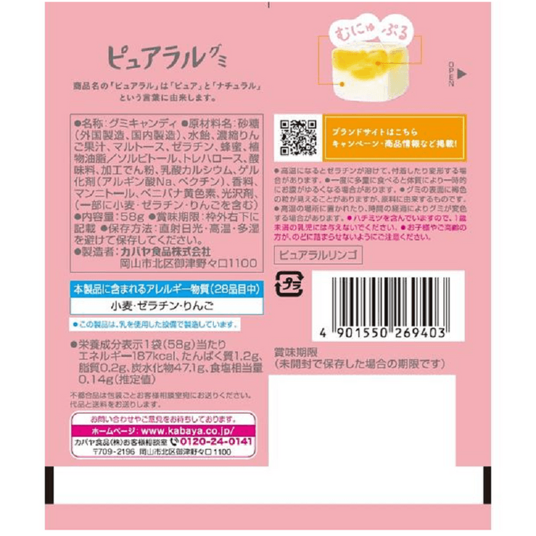 [일본 직송] 일본 카바야 레귤러 맛 아오모리 사과 일본 과일 주스 샌드위치 젤리 캔디 58g