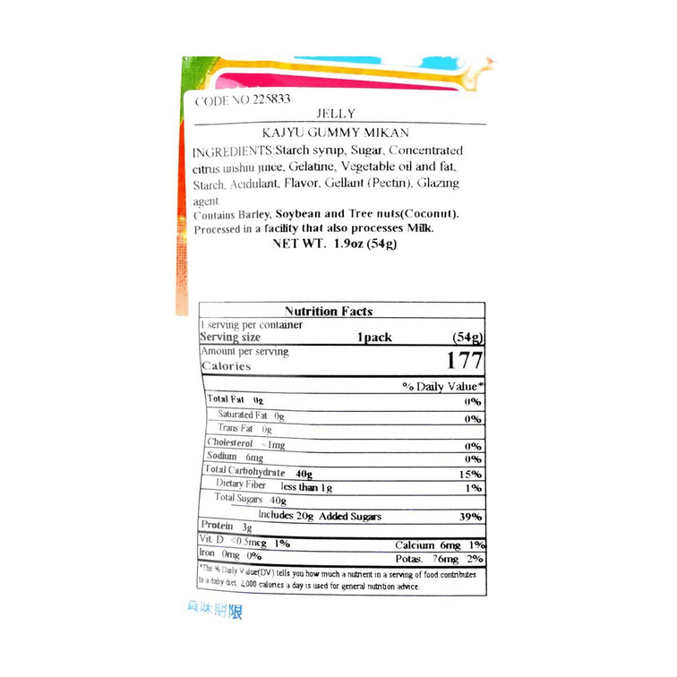 100% 과일 주스 젤리 젤리 캔디, 오렌지 맛 1.91oz