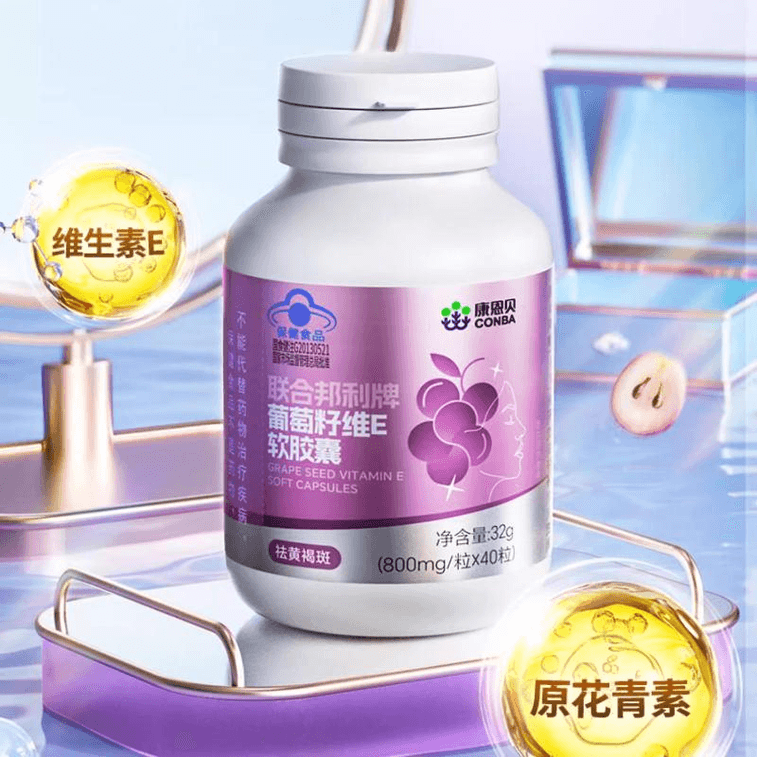[중국 직송] 강건베이 포도씨 비타민E 소프트 캡슐 (40캡슐, 32g) 1박스