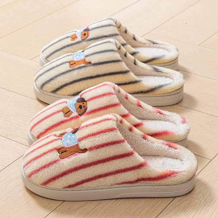 겨울용 회색 플러시 슬리퍼, 포근하고 미끄럼 방지 기능, 가정용, 사이즈 6.5-7.5