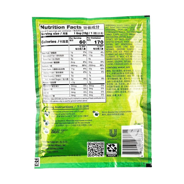 | 맛 | 홍콩식 핫앤사워 수프 믹스 |