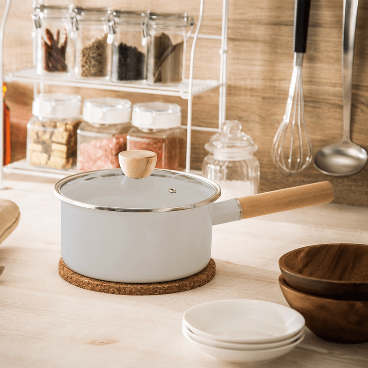 유리 뚜껑이 있는 에나멜 냄비 7.09인치
