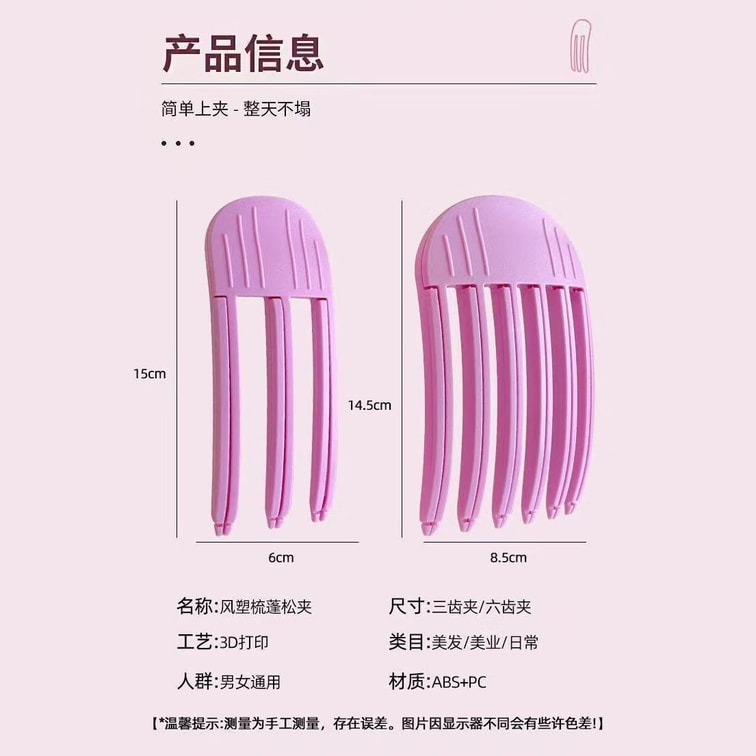 Korean Style Shaping Comb High Head Fluffy Clip Artifact Pink Two-piece Set (three Teeth + Six Teeth)