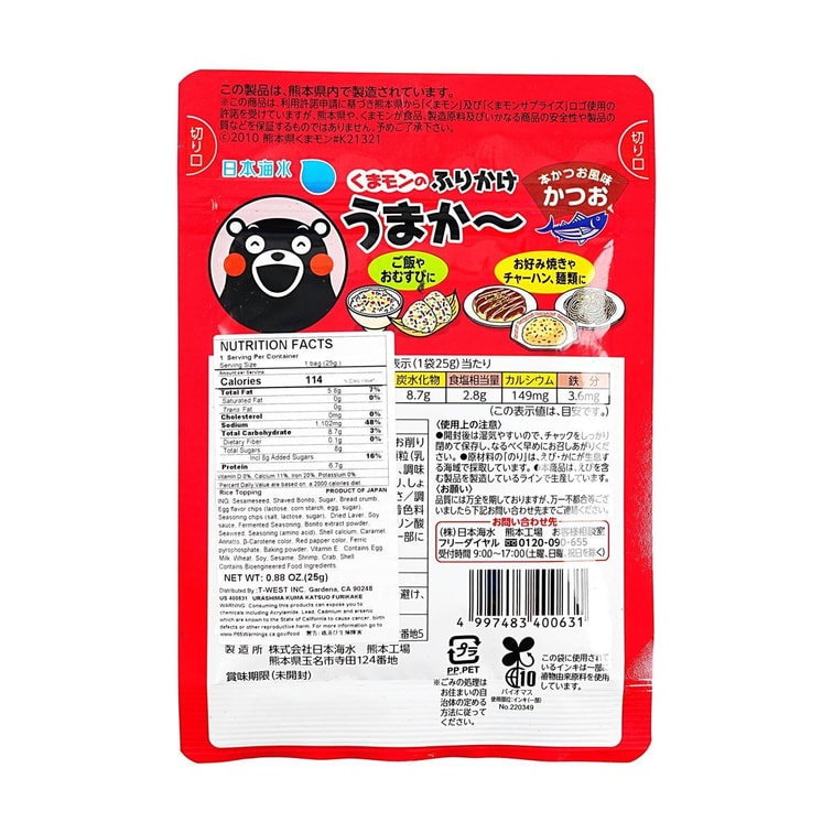 구마몬 가쓰오 후리카케 - 가다랭이 맛 쌀 양념, 0.88온스