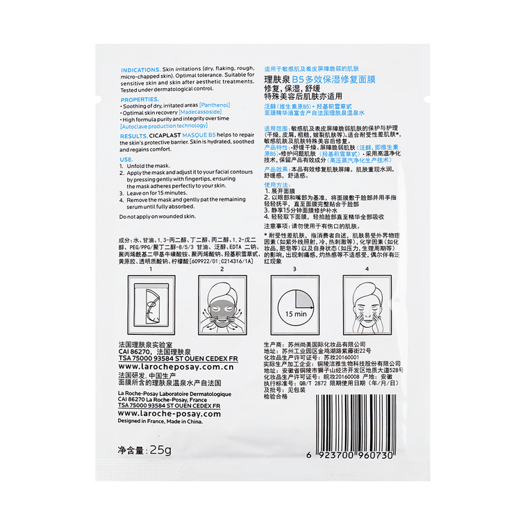 라로슈포제 시카플라스트 마스크 B5 리페어 하이드레이트 수드 민감성 피부용 10매