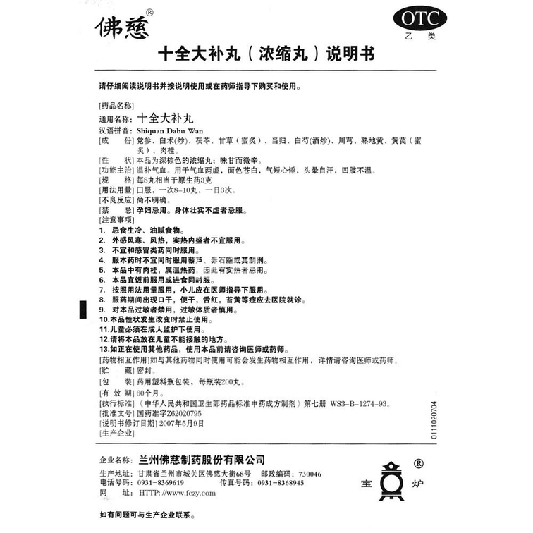 Lan Zhou Shi Quan Da Bu Wan For Lungs Heart Blood Circulatory System And Inner Ear
