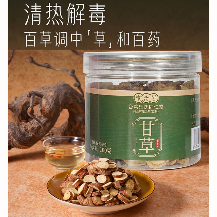 대만 통런탕 간쑤 정통 감초 슬라이스: 열을 내리고 해독하며, 목을 진정시키고 기침을 완화하며 가래를 삭이는 데 도움을 주는 전통 중국 약재 100g입니다. 또한, 감초 슬라이스 차(건강 및 웰빙용)도 판매합니다. 이 차는 유황 성분이 없어 비장을 튼튼하게 하고 기를 보충하는 데 도움을 주는 허브차입니다.