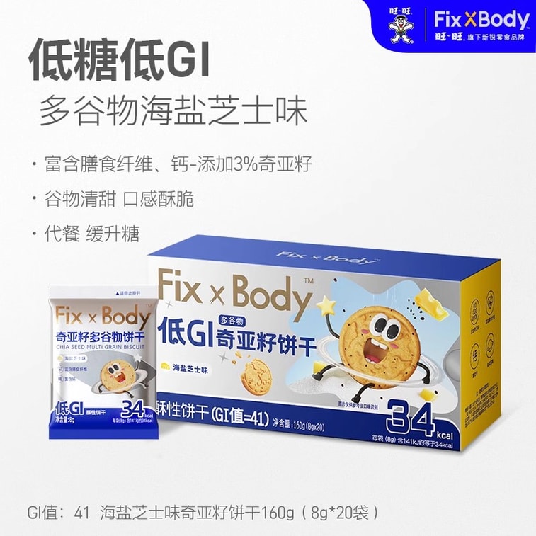 [중국에서 직접 우편 발송] fixxbody 저 GI 식사 대용품 통밀 치아씨드 비스킷 당뇨병 환자 및 임산부를 위한 설탕 조절 및 저칼로리 고식이섬유 고칼슘 저당분 해염 치즈 맛 160g/박스