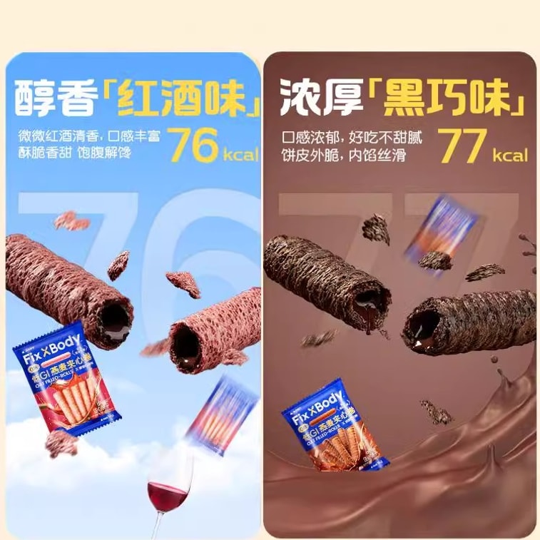 [중국에서 직접 우편] fixxbody 저 GI 오트밀 샌드위치 롤 0 설탕 고섬유 당뇨병 임산부 식사 대용품 저칼로리 영양 풀 벨리 멜로우 레드 와인 맛 32g/박스