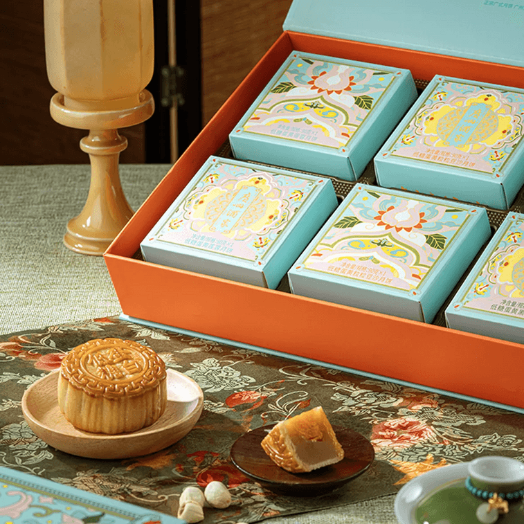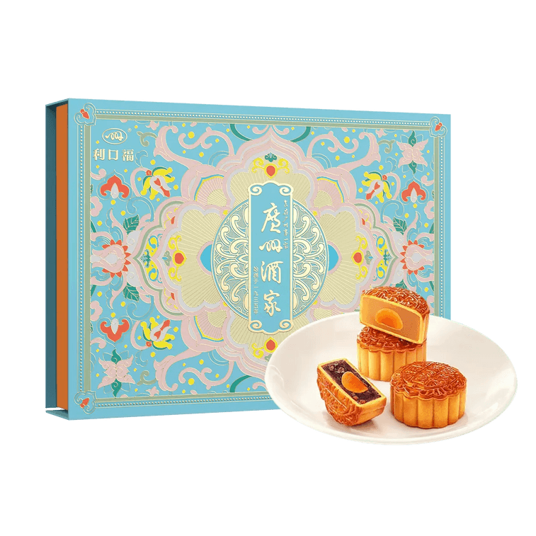저당 계란 노른자 월병 선물 상자 6개입 19.04온스 【순수 연꽃소, 곡물이 들어간 팥소, 검은 참깨】