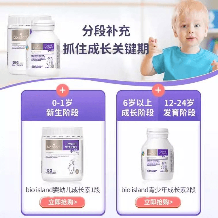 [중국 직배송] 호주산 바이오 아일랜드 라이신 츄어블 정, 어린이 및 청소년용 2단계 성장 보조제, 60정/병 | Yami