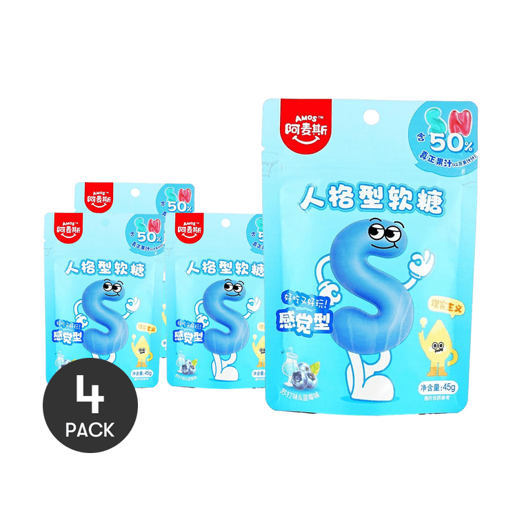 MBTI 성격 테스트 젤리 캔디 레터스 NS, 블루베리 & 소다 맛, 1.59온스 *4【4팩】【포장은 다를 수 있습니다】