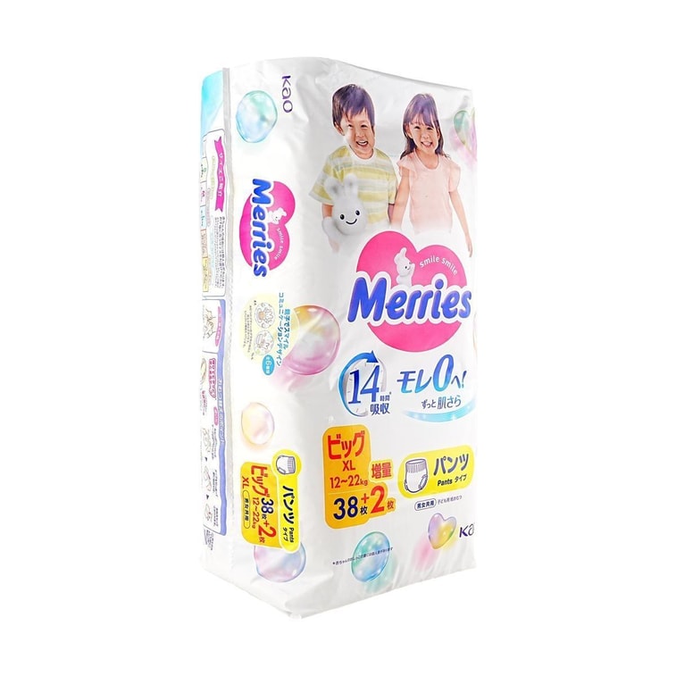 MERRIES 베이비 풀업 바지 남아 및 여아용 기저귀 XL 12-22kg 44개