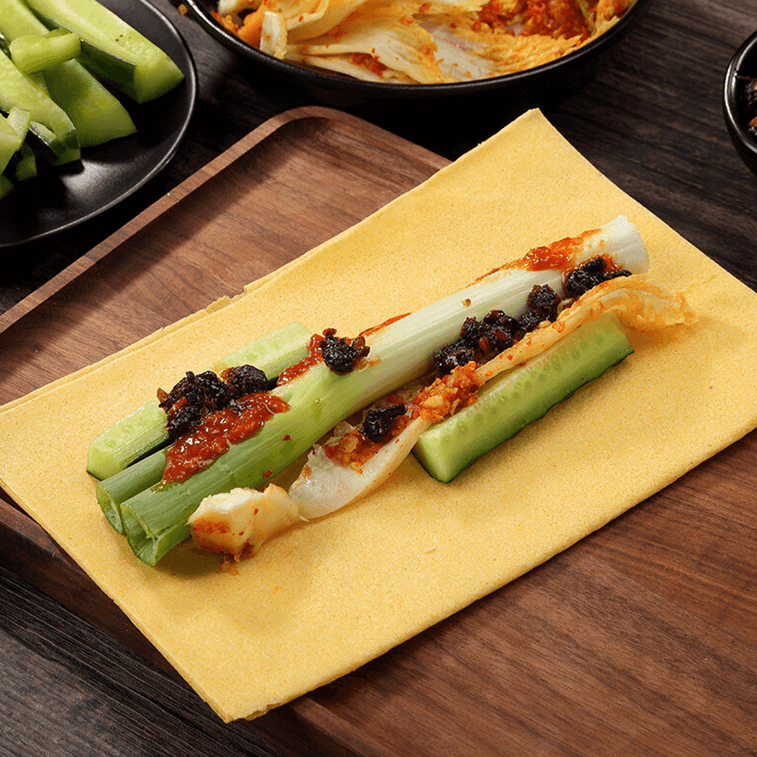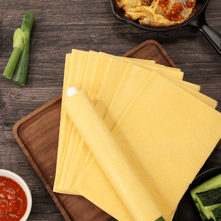 신선한 곡물을 잘게 갈아서 자연 발효시키고 전통적인 방법으로 조리하여 얇고 부드럽고 약간 달콤한 팬케이크를 만들었습니다.