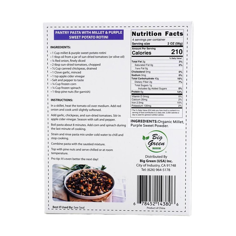 기장과 자색 고구마 로티니, 240g (8.81oz) 【비건】【글루텐 프리】