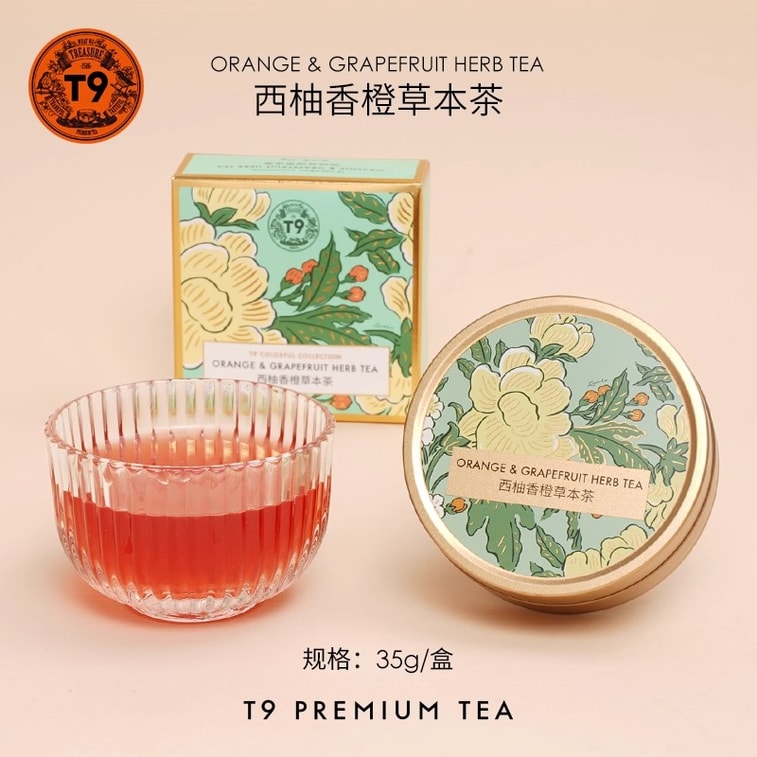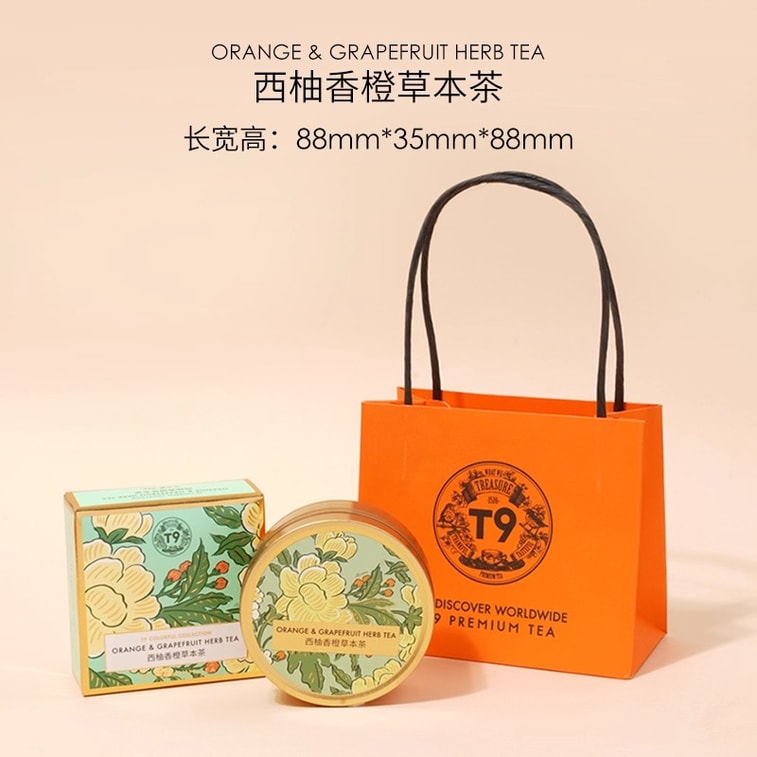 [중국 직배송] T9 미니 골드캔 [자몽 오렌지 티] 과일차, 따뜻한 차, 허브차 선물상자, 35g, 기념품
