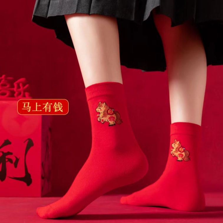 하이란싱 2026년 말띠 해 설날 "벼락부자가 되세요" 양말, 사이즈 33-39. 엄선된 신장산 코튼으로 제작되어 신축성이 뛰어나고 조이지 않으며 피부에 자극이 없고 보풀이 잘 생기지 않습니다. 1개입.