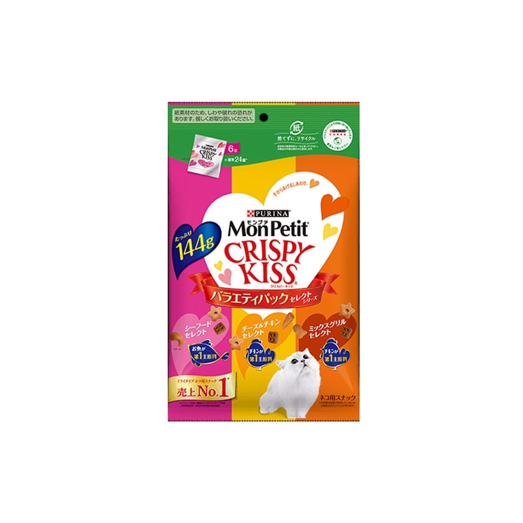[일본직배송] 몬페티 크리스피키스 고양이치즈 비스킷 스낵 6g*24봉 해산물+치킨+치즈치킨
