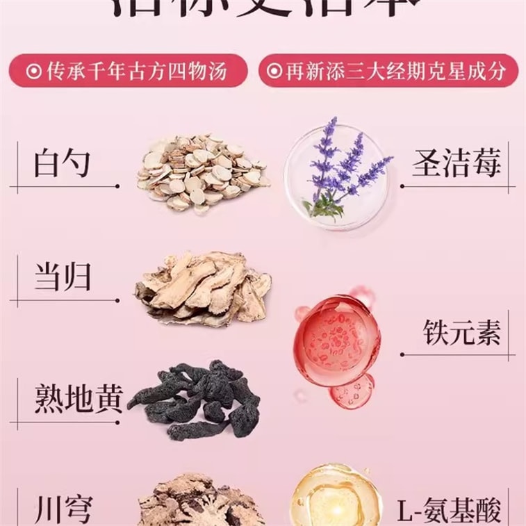 [중국 직송] Vita Green Yueshu Bu 캡슐(냉증 완화용) 여성 생리 조절 및 유지, 60캡슐/박스